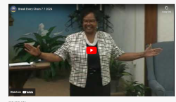 Break Every Chain July 7, 2024 Video SHARE ON Twitter Facebook Buffer LinkedIn Pin It Leave a Reply Cancel replyYour email address will not be published. Required fields are marked *Comment * Name * Email * Website Δ Continue Reading Fight the Good Fight of Faith Healed By His Stripes